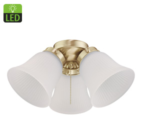 LED Cluster Ceiling Fan Light Kit Polished Brass Finish Frosted Ribbed Glass Includes (3) Medium (E26) Base, 5 Watt Omni A15 LED Lamps