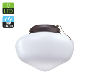 LED Schoolhouse Ceiling Fan Light Kit Oil Rubbed Bronze Finish White Opal Glass Includes (1) Medium (E26) Base, 9.8 Watt Omni A19 LED Lamp