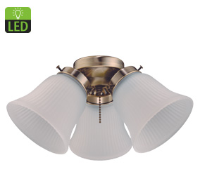 LED Cluster Ceiling Fan Light Kit Antique Brass Finish Frosted Ribbed Glass Includes (3) Medium (E26) Base, 5 Watt Omni A15 LED Lamps