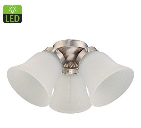 LED Cluster Ceiling Fan Light Kit Brushed Nickel Finish Frosted Ribbed Glass Includes (3) Medium (E26) Base, 5 Watt Omni A15 LED Lamps