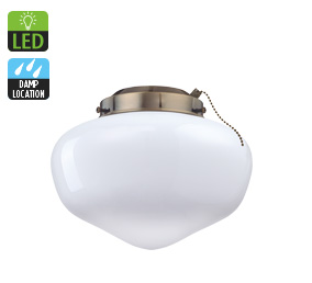 LED Schoolhouse Ceiling Fan Light Kit Antique Brass Finish White Opal Glass Includes (1) Medium (E26) Base, 9.8 Watt Omni A19 LED Lamp