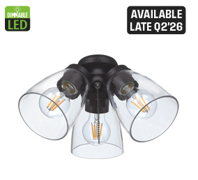 LED Cluster Ceiling Fan Light Kit Matte Black Finish Clear Glass Includes (3) Medium (E26) Base, 6.5 Watt Filament A19 LED Lamps