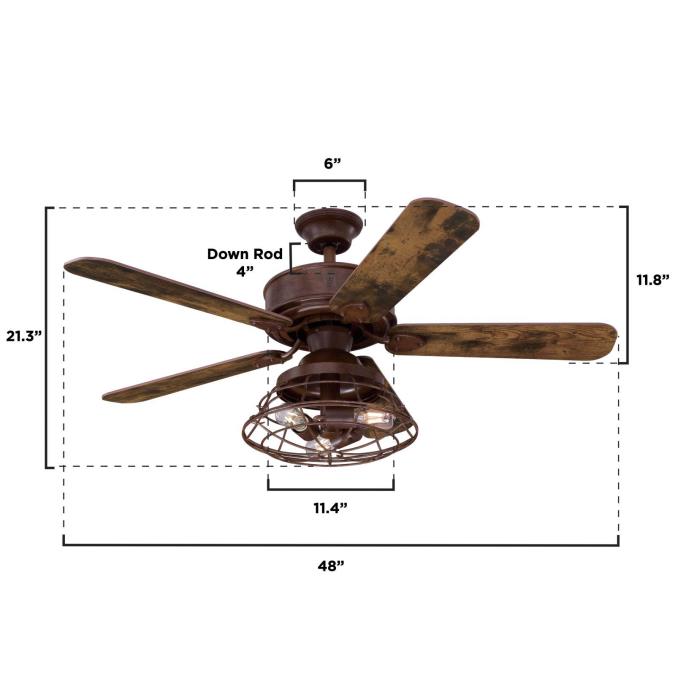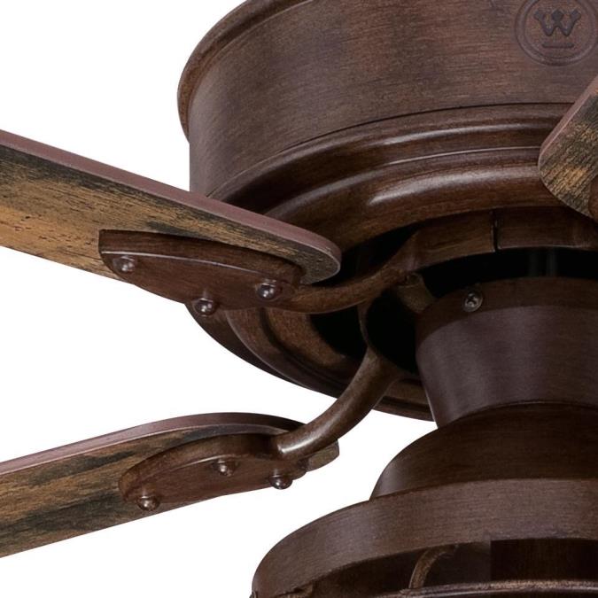 - Barnwood finish combined with reversible reclaimed hickory/pewter ash blades and a cage shade make a statement in vintage and rustic interiors