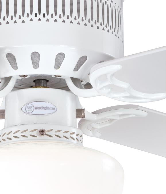 - Reversible white and white washed pine blade finishes complement the white ceiling fan finish, and offer attractive options to accentuate your decor
