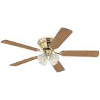 Bring a traditional touch to your home with the Contempra IV polished brass ceiling fan. Complementing the lustrous ceiling fan finish are coordinating blades in walnut and oak finishes.