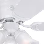 - Reversible white and white washed pine blade finishes complement the white ceiling fan finish, and offer attractive options to accentuate your decor