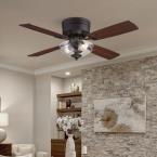 The 42-inch Hadley ceiling fan is perfect for any small to medium-sized room with a low ceiling and complements any style. A clear glass bowl complements the black-bronze finish and includes LED bulbs for energy-efficient brightness. The reversible blades in dark cherry and rosewood finish add warmth and texture to a room.