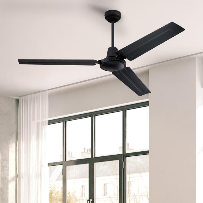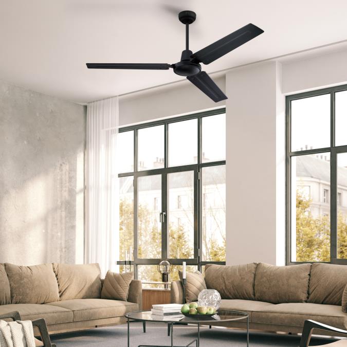The Jax 56-inch ceiling fan is designed for modern industrial interiors and is particularly suited for lofts and great rooms with higher ceilings. The contemporary design of the Jax fan, with its matte black color scheme, adds a dramatic and sophisticated touch to any space. Its four-speed functionality allows customized comfort, easily adjusted via the included backlit remote control.