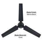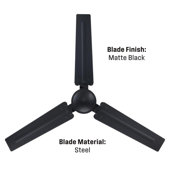 - The matte black ceiling fan with matte black blades adds dramatic appeal to contemporary spaces