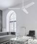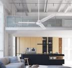 - Three steel blades in white finish complement the white fan for a modern ceiling fan with an industrial aesthetic