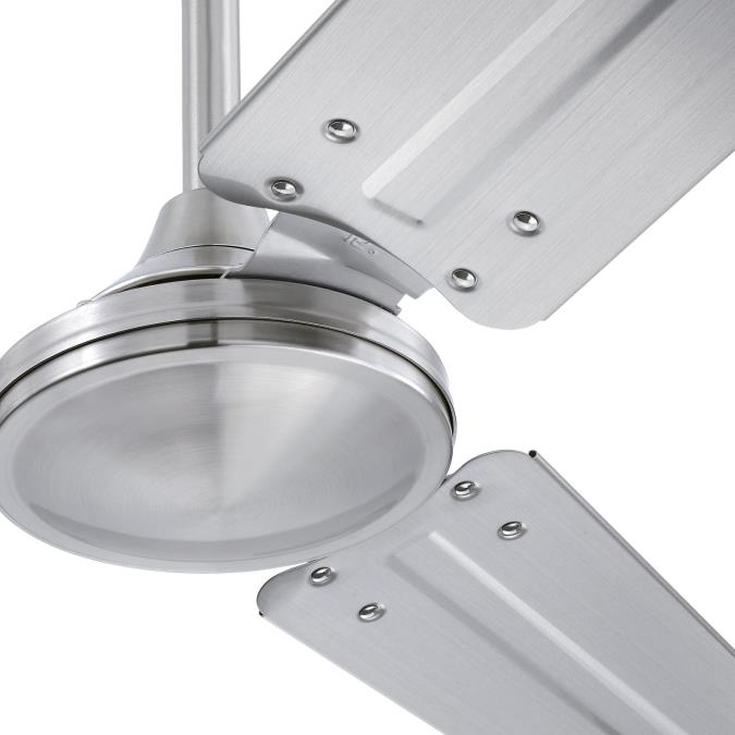 The modern industrial design of the 72-inch Jax ceiling fan makes it an ideal choice for lofts and great rooms. It features a 12-inch down rod, perfect for higher ceilings. With its brushed nickel finish and matching blades, this ceiling fan adds a striking touch to contemporary spaces.