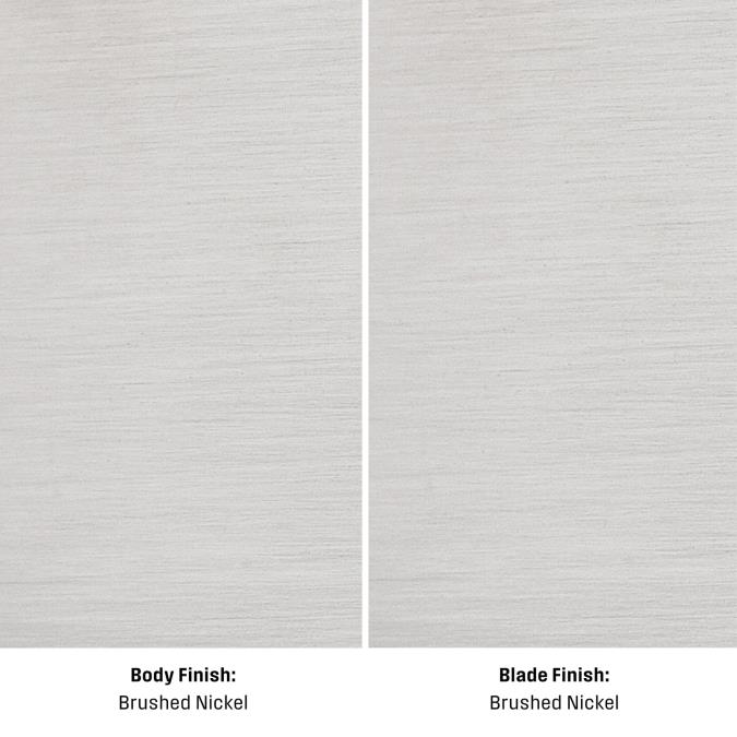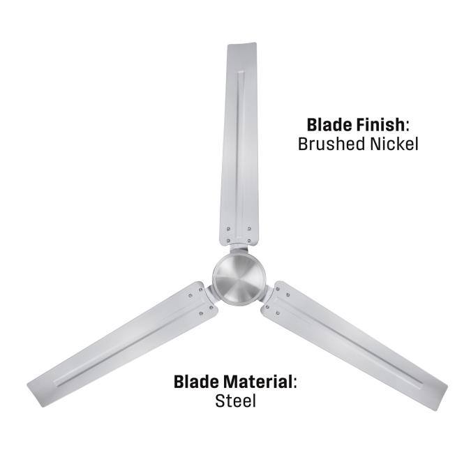 - Features three steel blades in brushed nickel, creating a sleek, contemporary aesthetic