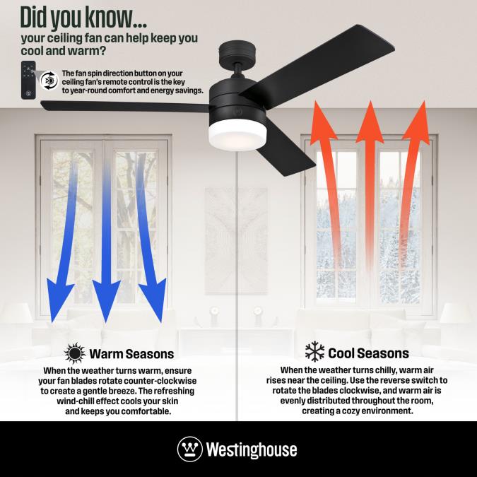 The fan comes with a six-speed backlit remote control that includes a seasonal direction function and four timer options, allowing for personalized and convenient comfort.