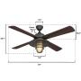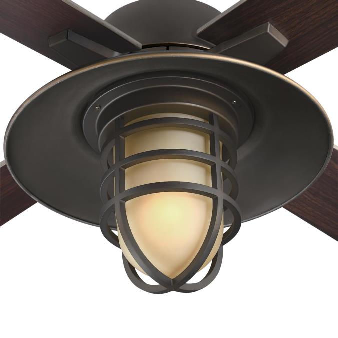 - Black-bronze finish combined with reversible dark walnut/wengue blades and amber frosted glass enhances vintage and rustic interiors