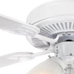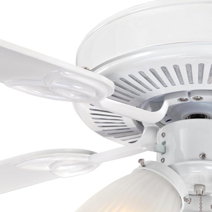 Enjoy classic elegance with the Vintage 52 inch ceiling fan with light, including three frosted ribbed glass shades and dimmable LED light bulbs. Delivering substantial air circulation and remarkable illumination to any larger-size room, this traditional ceiling fan features a white finish and reversible wood finish blades of white and white washed pine.