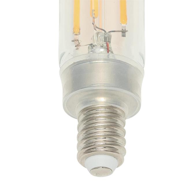 The tubular shape adds a touch of sophistication to both traditional and contemporary design fixtures, making it an excellent choice for sconces, pendants, and chandeliers with candelabra base sockets. The exposed filament design mimics the charm of antique Edison bulbs, offering a nostalgic appeal. A 2700K color temperature creates a cozy ambiance well-suited for vintage-style and open-design fixtures, enhancing their aesthetic appeal while providing ample illumination. The full dimming capability allows you to adjust the brightness to suit different tasks, making it versatile for various settings and moods.