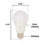The innovative Omni A19 LED with color temperature selection offers multiple kelvin options, allowing you to buy a single bulb and choose your preferred light appearance. You can easily switch between 2700K, 3000K, 3500K, 4000K, or 5000K to customize the ambiance of your setting to suit your mood.