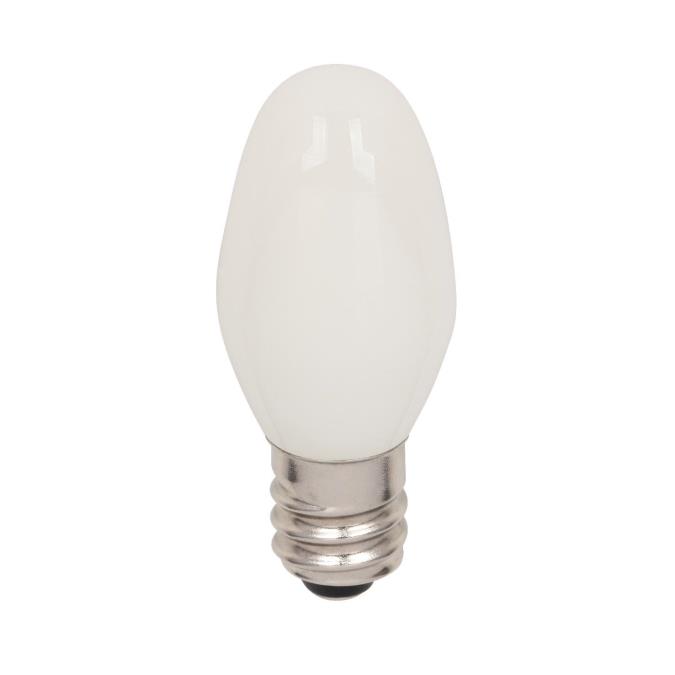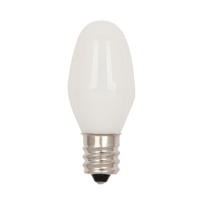 The energy-efficient clear C7 LED bulb is the perfect upgrade for traditional incandescent C7 night light bulbs. The 2700K color temperature creates a soft white glow, perfect for nightlights, decorative window candles, enclosed fixtures, and damp-rated areas such as outdoor lighting. With a low energy use of 0.4 watts, the C7 LED emits the same brightness level as a 4-watt incandescent bulb, providing long-lasting performance and reduced energy consumption.