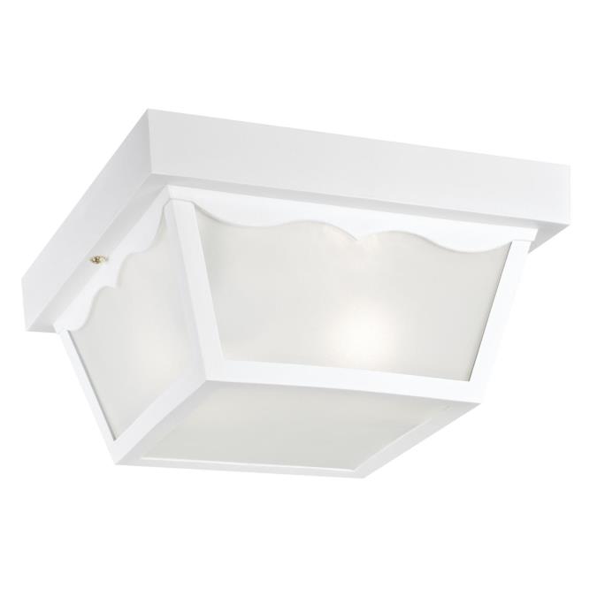 Provide welcoming light outside your home when you illuminate a front or back entryway with this two-light flush-mount fixture. The white finish and frosted glass panels blend well with any setting.
