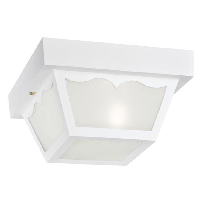 Provide welcoming light outside your home when you illuminate a front or back entryway with this one-light flush-mount fixture. The white finish and frosted glass panels blend well with any setting.
