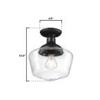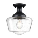 With its classic schoolhouse design, the Scholar 9-inch semi-flush mount ceiling light is perfect for many home exteriors, from modern to farmhouse. Textured black light fixture with a hand-blown clear seeded glass shade adds a modern-industrial vibe to any decor and provides bright illumination.