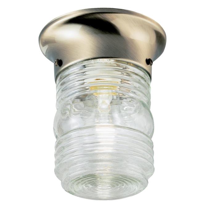 Light up your home with this one-light flush-mount ceiling fixture. With a simple jelly jar shape, steel construction, antique brass finish, and clear glass, this piece has a versatile aesthetic that matches a traditional country home as well as a modern urban loft.