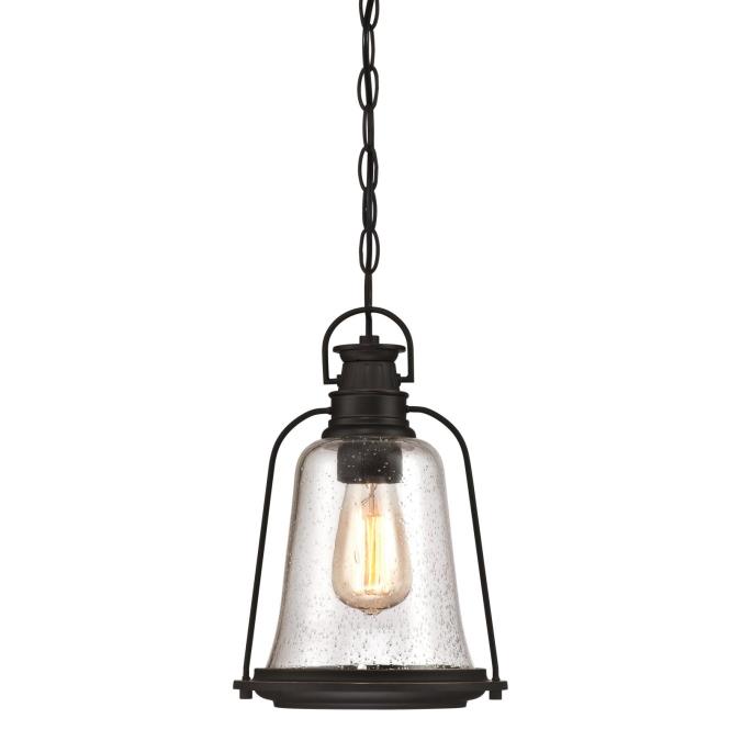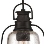 Cast a welcoming glow outside your home with the Brynn one-light pendant. This attractive hanging fixture features clear seeded glass, enriched by oil rubbed bronze finish with highlights. Since the bulb is central to the design, we recommend enhancing your outdoor ambiance with a Westinghouse filament LED or Timeless ST20 light bulb.
