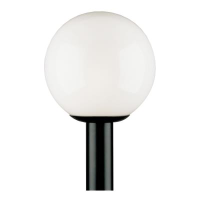 A complementary accent to modern architecture, this post-top lantern adds sophistication to your home's exterior. The sleek white acrylic globe sheds broad, even light, while the durable black polycarbonate base provides a striking contrast that adds to the lantern's modern appeal.