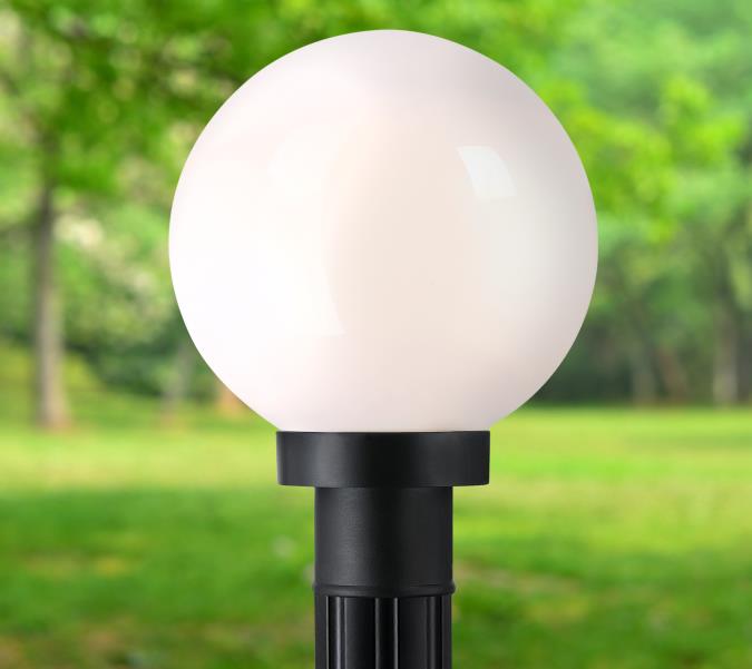 A complementary accent to various home styles, this post-top lantern adds bright illumination to your home's exterior. The sleek opal acrylic globe sheds light, while the durable black polycarbonate base provides a striking contrast that adds to the lantern's modern appeal.