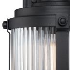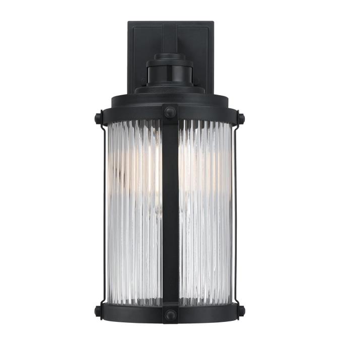 FEATURES & BENEFITS- This wall lantern features a textured black finish and clear ribbed glass, providing elegant brightness outside your home