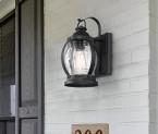 The charming one-light Canyon lantern turns any outdoor space into a welcoming environment. Clear crackle glass is stunningly juxtaposed with the textured black finish, adding a sophisticated touch to the vintage design.