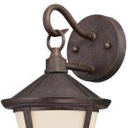 Darcy one-light LED outdoor wall lantern offers traditional design with energy-efficient lighting. Featuring a classic lantern style, this outdoor wall fixture complements many home exteriors while saving money. Victorian bronze finish on durable steel, paired with amber frosted glass provides attractive and dependable outdoor illumination. The integrated LED consumes only 8.5 watts of energy with a brightness of 748 lumens, equivalent to 1-40W incandescent bulb. This long-lasting LED is cool to the touch and offers the convenience of never having to replace a single bulb.