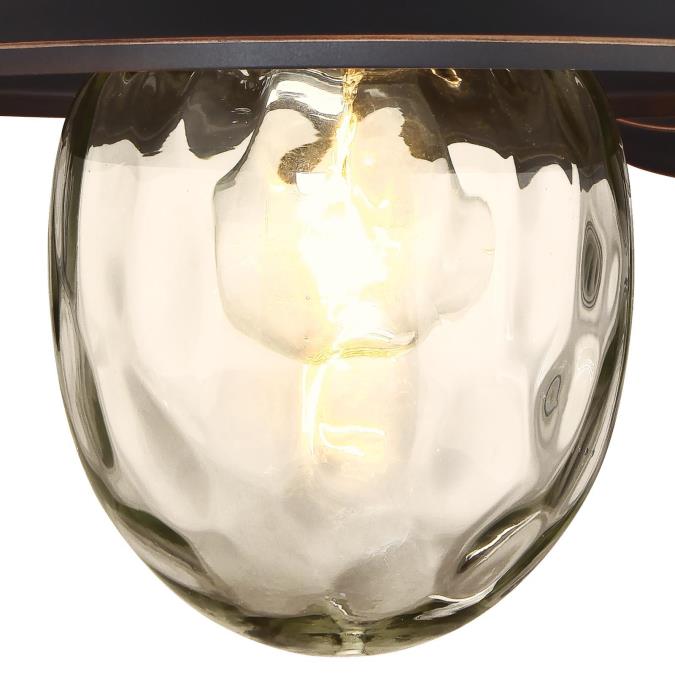 The Delmont collection offers one railroad style fixture and three different eye-catching glass shades. Each unique wall light has an appealing rustic character and provides warm ambience. This Delmont fixture features an oil rubbed bronze finish with highlights and sparkling water glass.