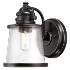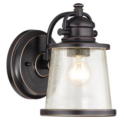 Light the way to your home with the welcoming Emma Jane one-light wall lantern. Add a hint of coastal style to any outdoor space. Rich amber bronze finish with highlights adds warmth. The fixture's clear seeded glass filters warm light for inviting illumination. This fixture is an ideal accent for a front or back entryway, garage door, porch, deck, or patio. For added vintage appeal use Westinghouse Timeless Vintage Inspired light bulbs (not included) to create the atmosphere you want.