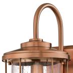 The Ferry outdoor wall fixture, in washed copper finish, fits industrial, coastal and rustic outdoor themes. The washed copper finish and cage design are sure to add distinguishing curb appeal to any exterior setting. Clear seeded glass adds a textural element, and allows a view of the bulb. We recommend a Westinghouse filament LED or Timeless light bulb to add a retro touch to this fixture's unique style.