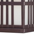 - Oil rubbed bronze finish and frosted glass panels create attractive contrast in this craftsman design