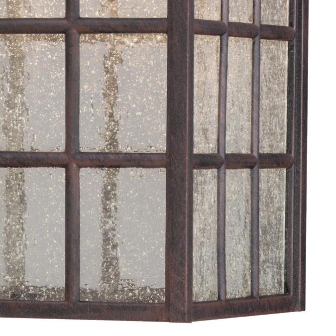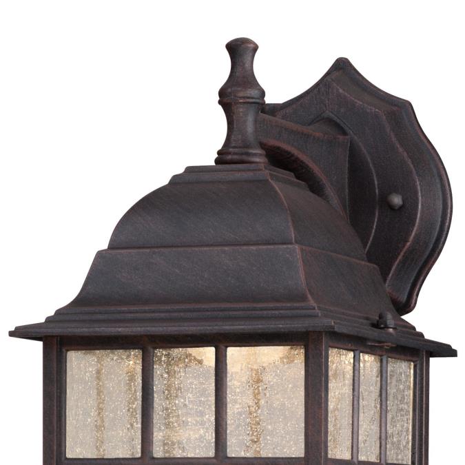 This attractive one-light LED outdoor wall lantern includes an integrated LED for long-lasting illumination and energy-savings. Constructed from durable cast aluminum, this traditional fixture features a classic design in a rich weathered patina finish that creates a striking contrast to the seeded glass windowpane panels. This wall lantern is an ideal accent for a front or back entryway, garage door, porch, deck, patio, or balcony.