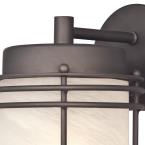 Add an illuminating, finishing touch to your home's exterior with the Parksville one-light wall lantern. Constructed from durable steel, this transitional fixture features a cylindrical cage-style design. The rich oil rubbed bronze finish creates a dramatic contrast to the white alabaster glass shade.