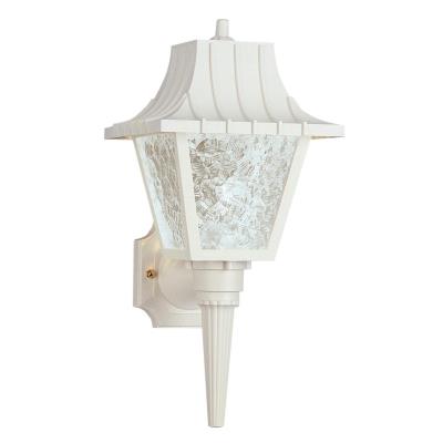 Add welcoming light and curb appeal to a front or back doorway with the traditional one-light wall lantern. This classic piece features a removable tail, a crisp white finish, and textured acrylic panels.