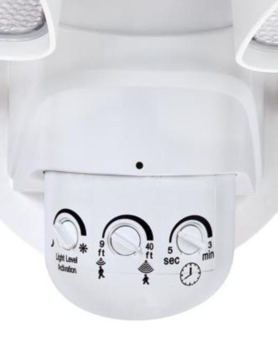 - Motion sensor controls allow for customization of light level activation, detection area, and timing