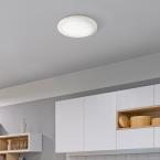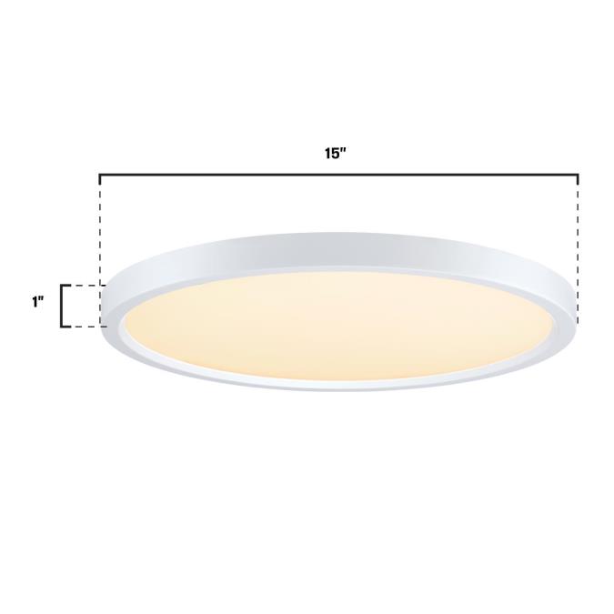 The sleek, low-profile, 15-inch round fixture features a white finish and acrylic shade for a seamless fit in any home area. This LED ceiling light fixture is a maintenance-free, long-lasting, and energy-efficient replacement for incandescent ceiling fixtures.