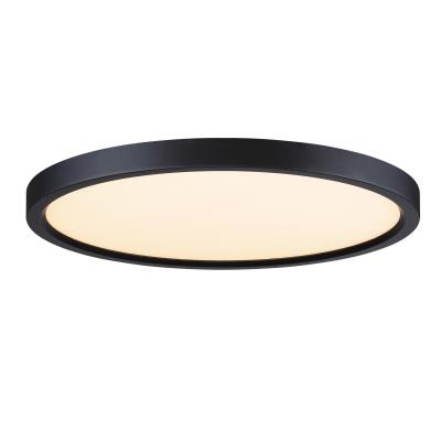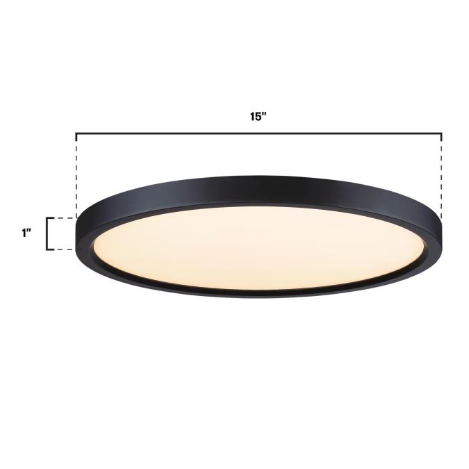 The sleek, low-profile, 15-inch round fixture features a black finish and acrylic shade for a seamless fit and modern flair in any home area. This LED ceiling light fixture is a maintenance-free, long-lasting, and energy-efficient replacement for incandescent ceiling fixtures.