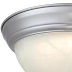- Features a sleek brushed nickel finish and white alabaster glass shade