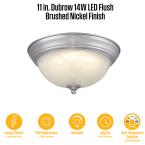 Elevate your home decor with this stunning flush mount light, featuring a sleek brushed nickel finish and an elegant white alabaster glass shade. Offering versatile illumination options, you can choose from five color temperatures—warm white (2700K/3000K), cool white (3500K/4000K), and daylight (5000K)—to create the perfect ambiance for any occasion. With integrated LED technology, this energy-efficient fixture ensures long-lasting performance while reducing power consumption. Its dimmable functionality allows for customizable brightness, making it an ideal choice for entryways, hallways, kitchens, and laundry rooms—an exquisite upgrade from standard lighting solutions.