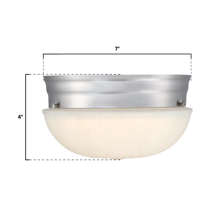 - Features a sleek brushed nickel finish and frosted, fluted hand-blown glass shade