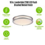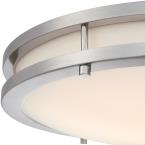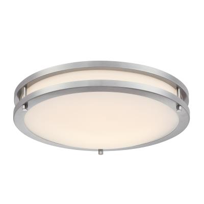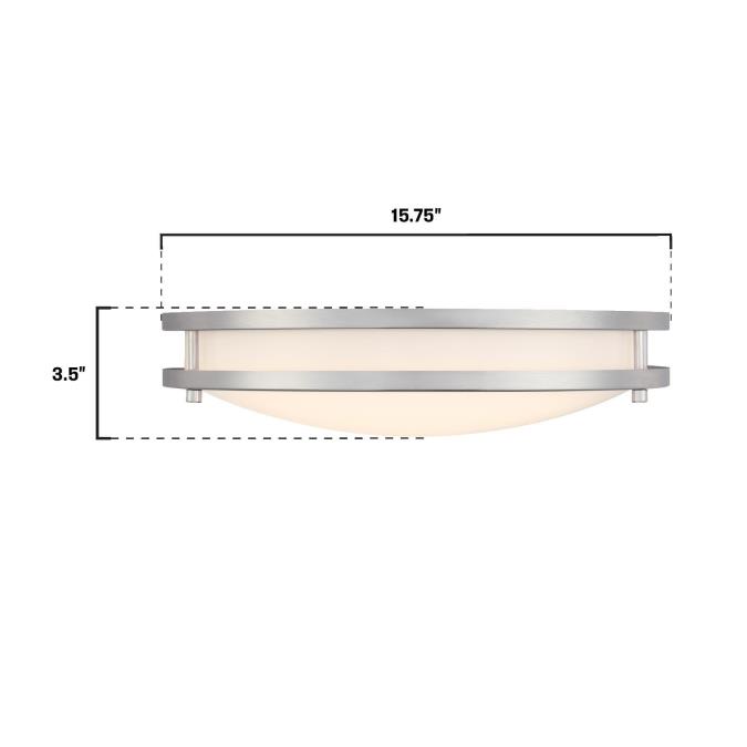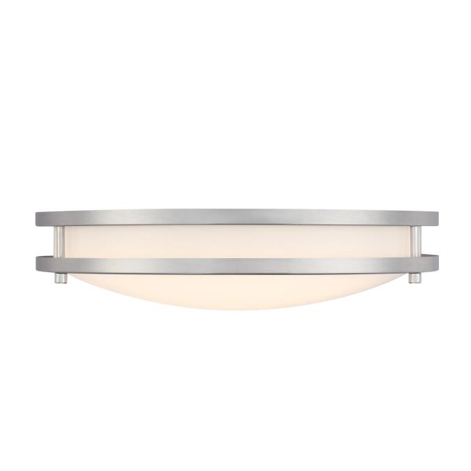 The Lauderdale fixture showcases a sleek design with a frosted shade that diffuses light evenly across the room. Elegant brushed nickel bands add a touch of sophistication, making it a stylish addition to any decor. Whether it’s installed in kitchens, bedrooms, or living rooms, this fixture provides bright and welcoming illumination that enhances any space. With its dimmable functionality, you have complete control over the lighting intensity, enabling you to create the perfect mood at any time of the day.