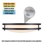 Experience the perfect blend of functionality and style with the 16-inch Lauderdale flush mount ceiling fixture—your ideal lighting solution for every room. This modern fixture features a unique color temperature selection option, allowing you to customize the ambiance of your space to meet your specific needs. During installation, you can easily choose from five distinct color temperature settings: warm white (2700K or 3000K) for a cozy and inviting atmosphere; cool white (3500K or 4000K) for a balanced and neutral setting; or daylight (5000K) for vibrant and energizing illumination.