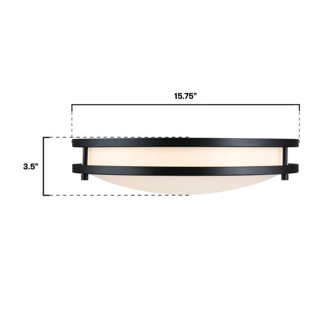 The Lauderdale fixture showcases a sleek design with a frosted shade that diffuses light evenly across the room. Elegant matte black bands add a touch of sophistication, making it a stylish addition to any decor. Whether it’s installed in kitchens, bedrooms, or living rooms, this fixture provides bright and welcoming illumination that enhances any space. With its dimmable functionality, you have complete control over the lighting intensity, enabling you to create the perfect mood at any time of the day.