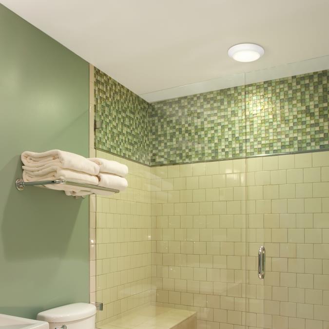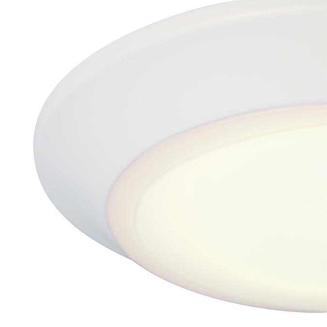 The white finish and frosted shade complement various interiors and coordinate with any color scheme. This indoor/outdoor surface mount is approved for wet locations and replaces incandescent or fluorescent ceiling fixtures in showers, bathrooms, and outdoor applications.