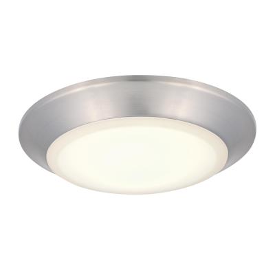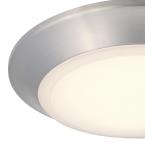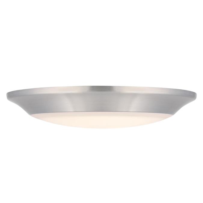 The brushed nickel finish and frosted shade complement various interiors and coordinate with any color scheme. This indoor/outdoor surface mount is approved for wet locations and replaces incandescent or fluorescent ceiling fixtures in showers, bathrooms, and outdoor applications.